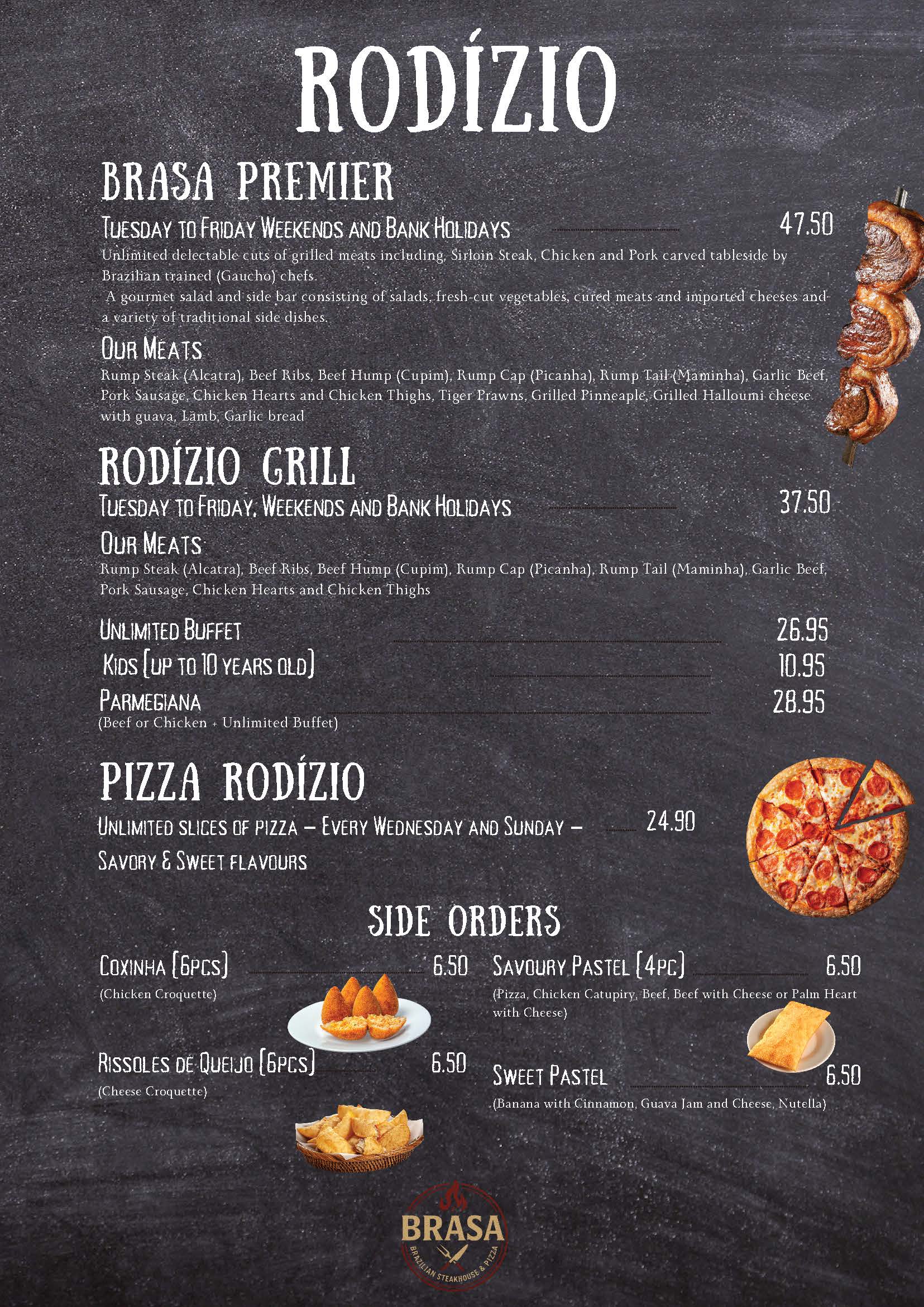 At Brasa London, we celebrate this culinary richness by bringing the best of Brazil to your table: from charcoal barbecue to artisanal pizzas, and a varied buffet of salads and traditional side dishes.